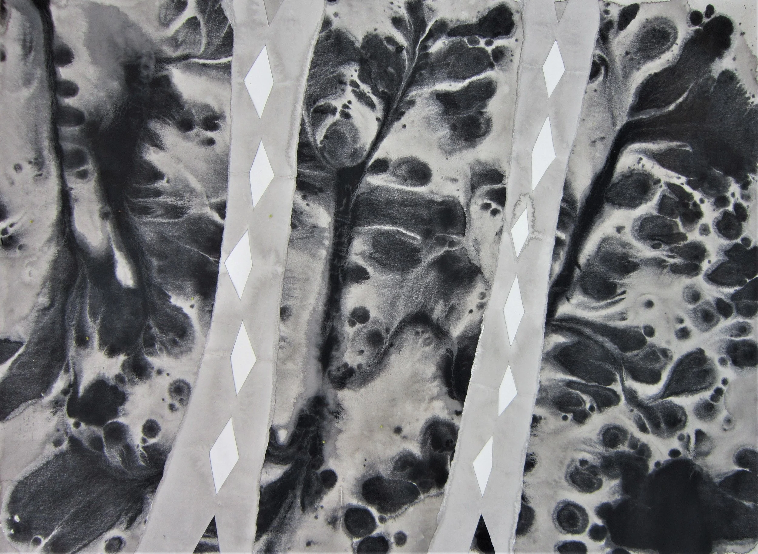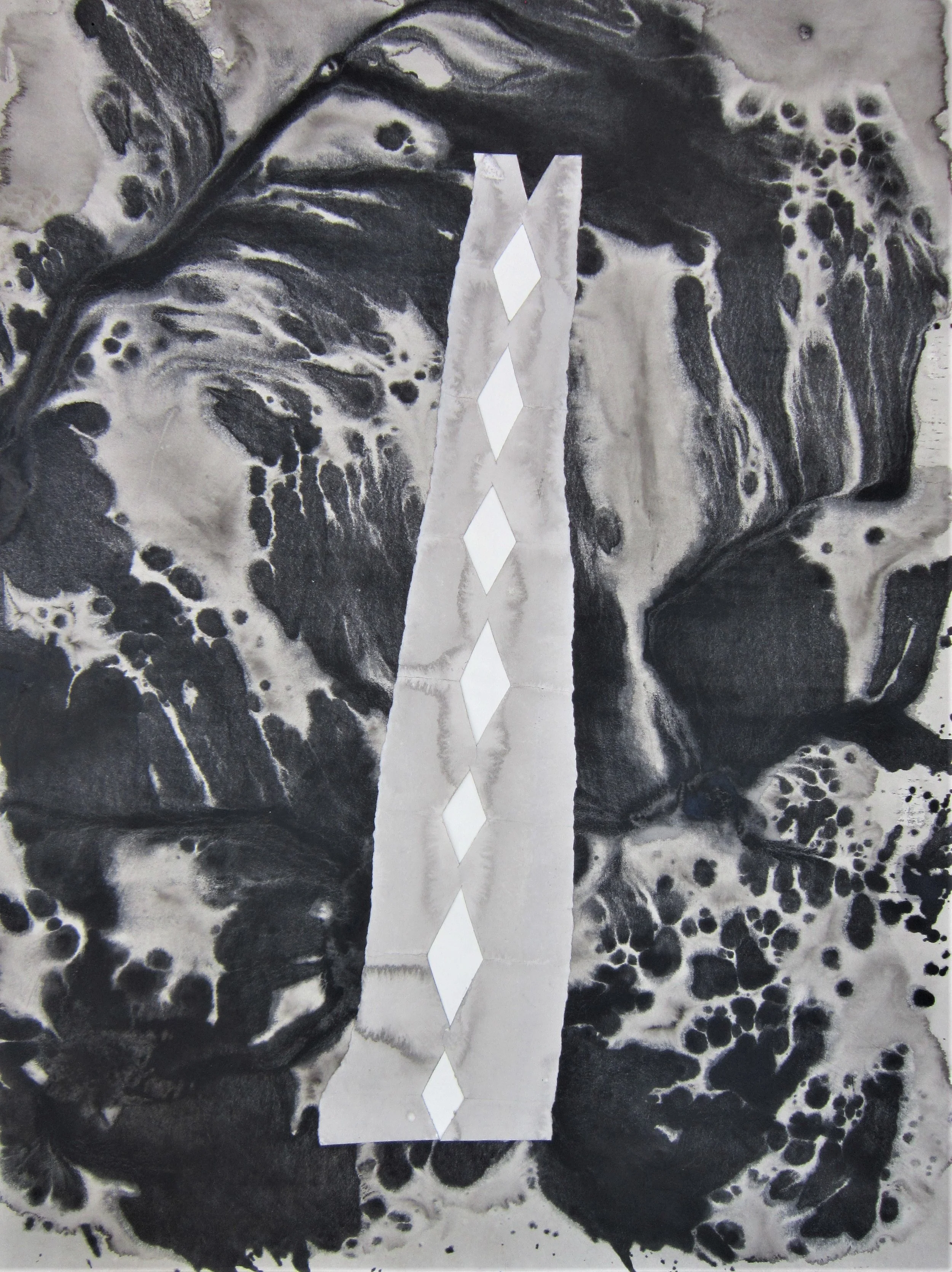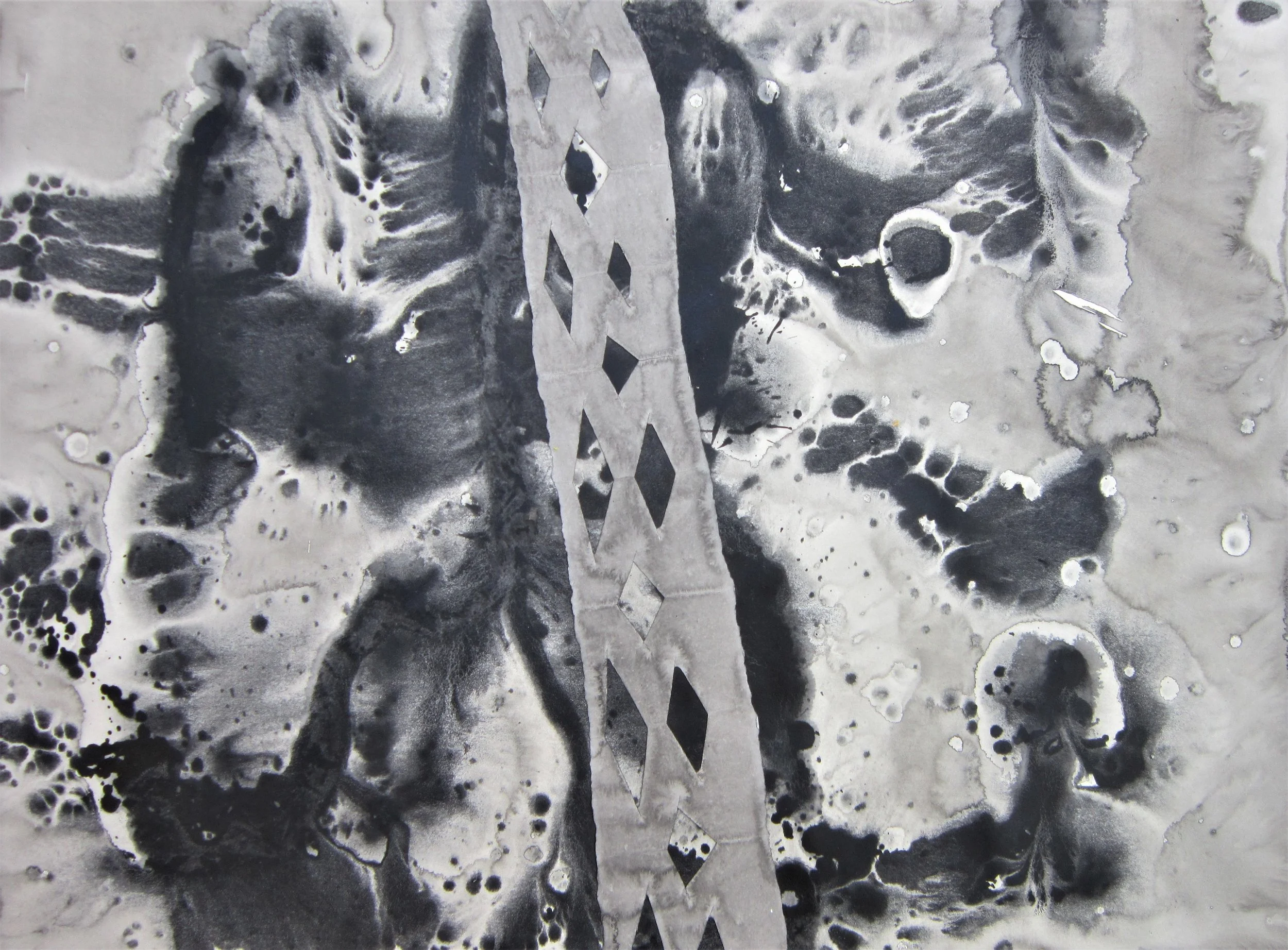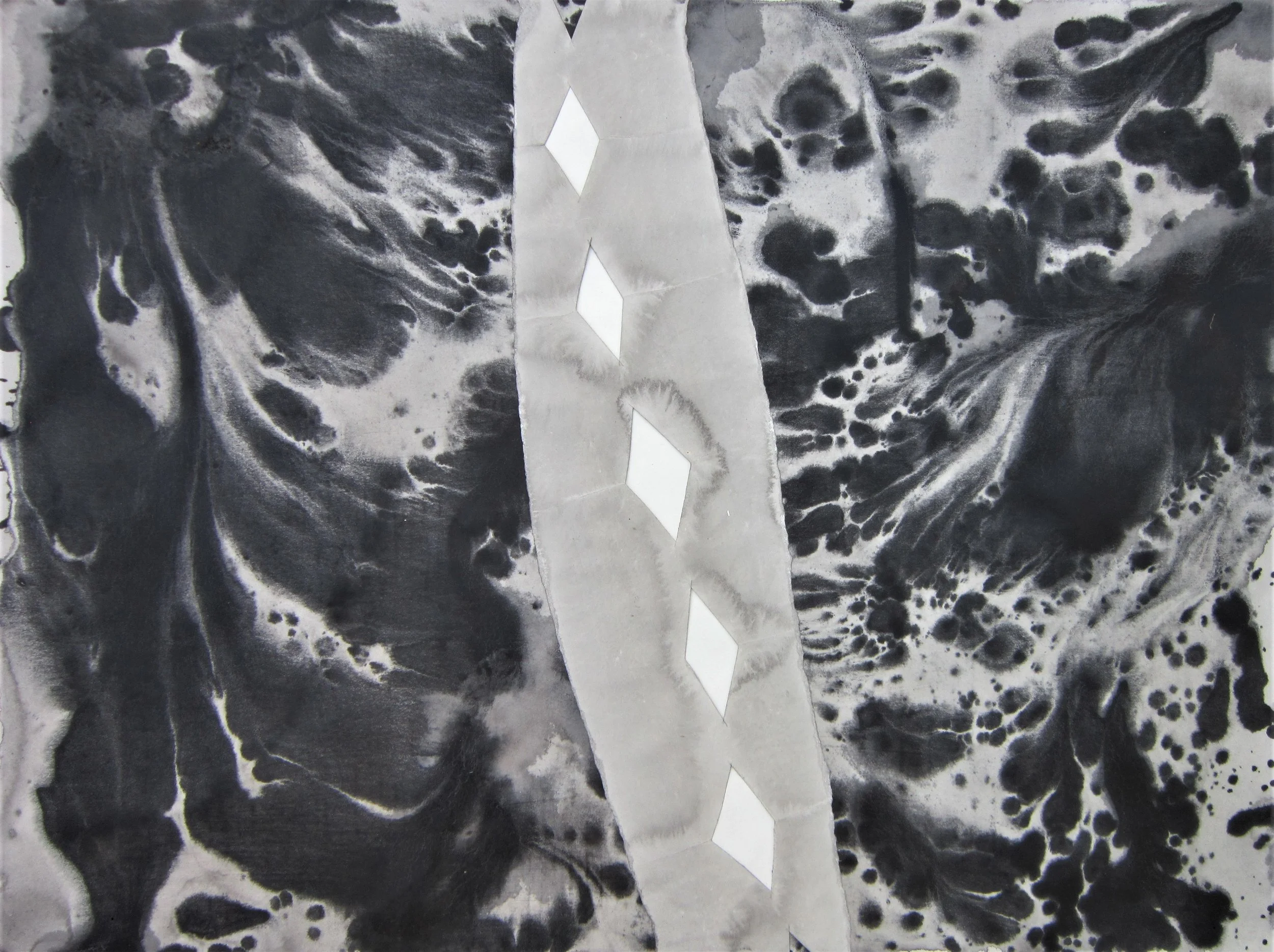 January 2018, Ink, rainwater, collage on paper, 18”x24”