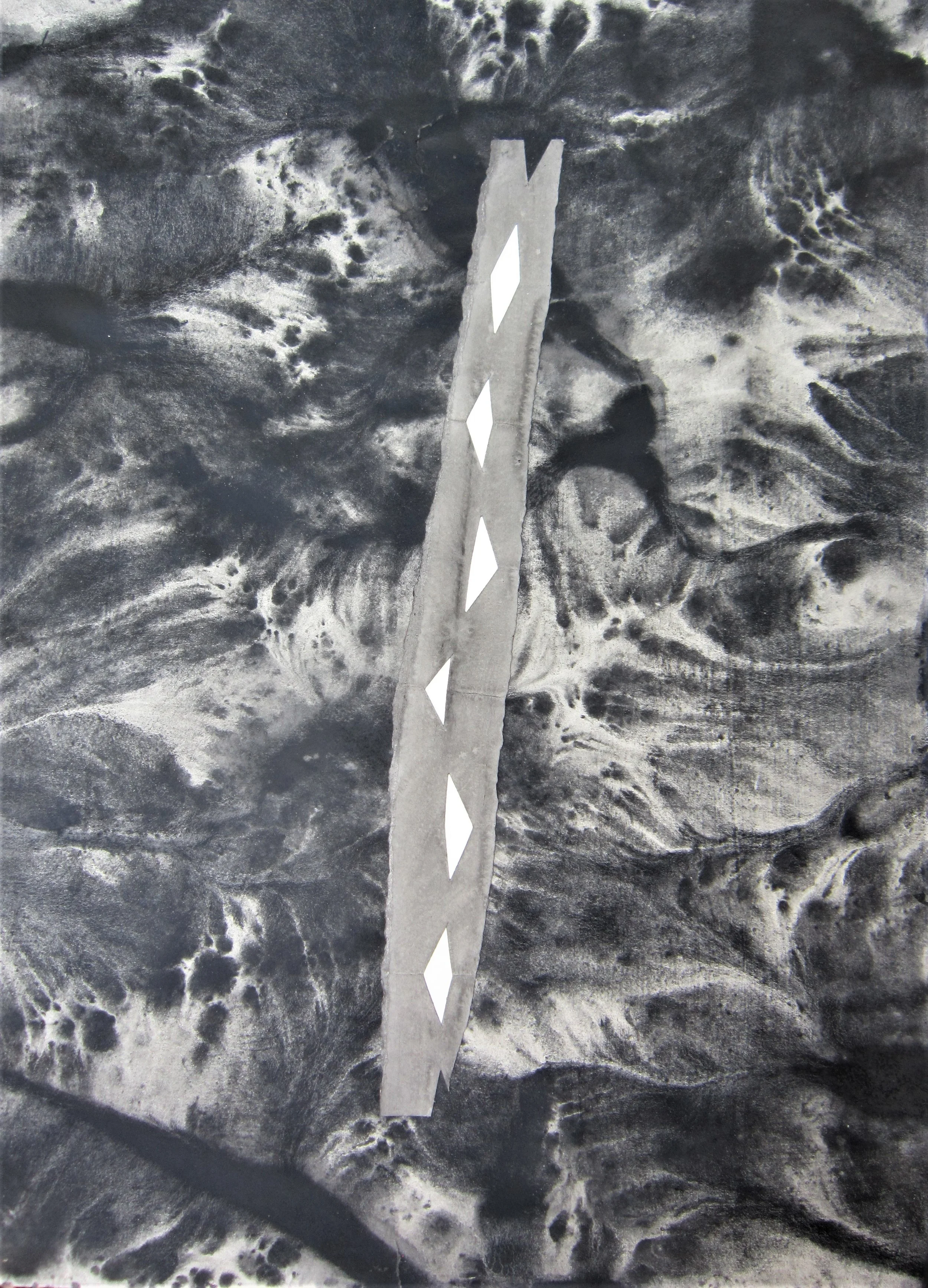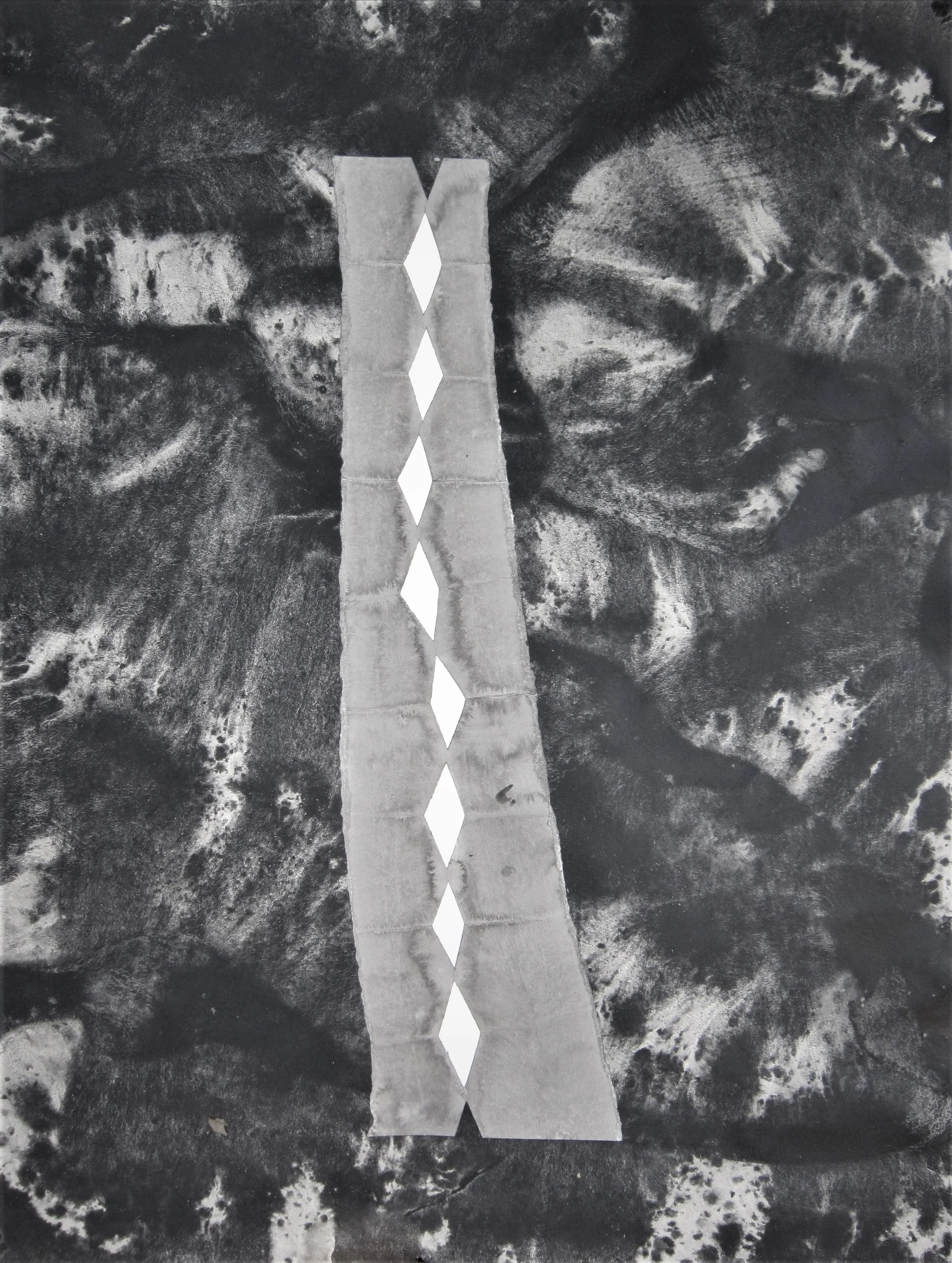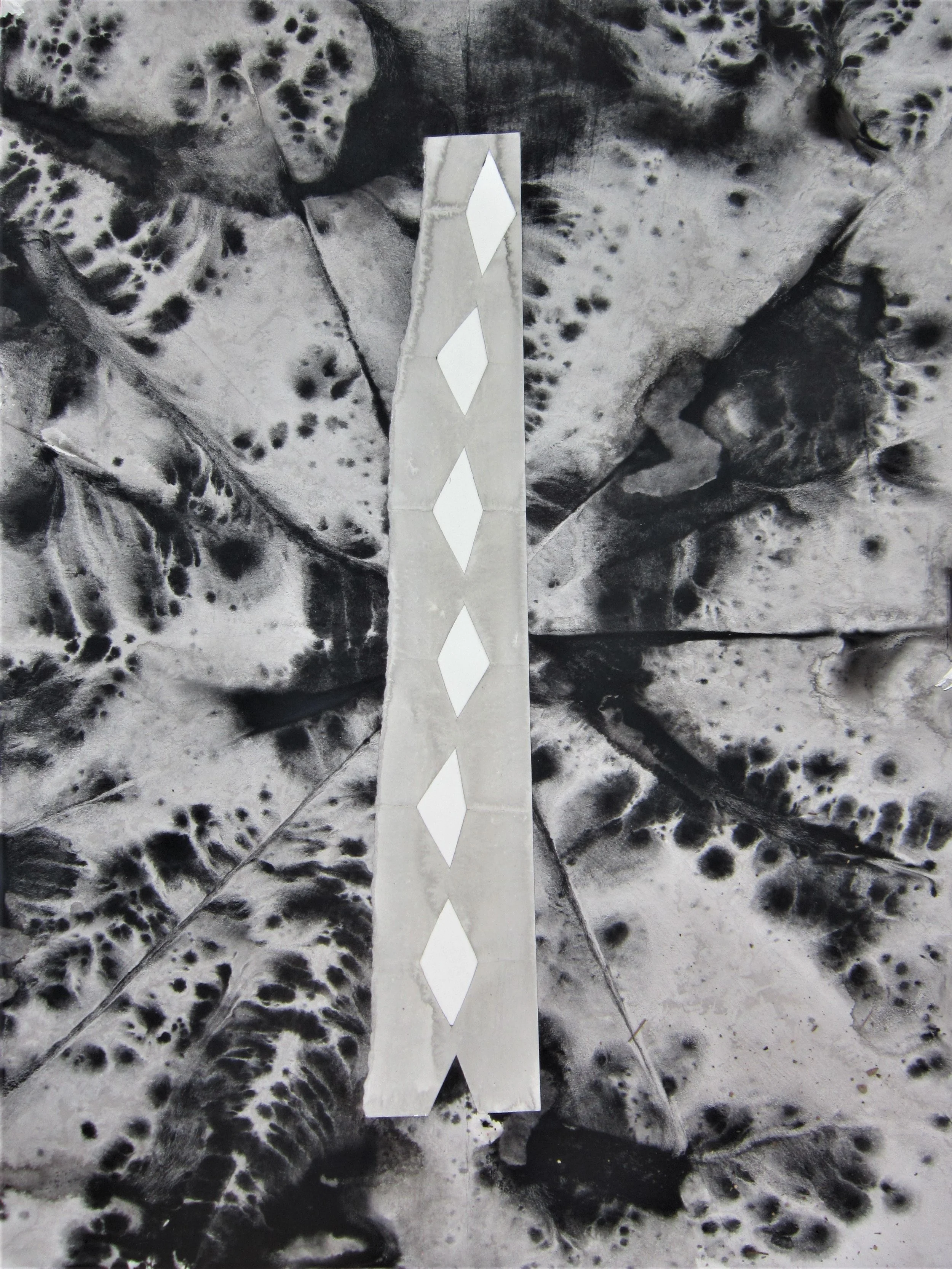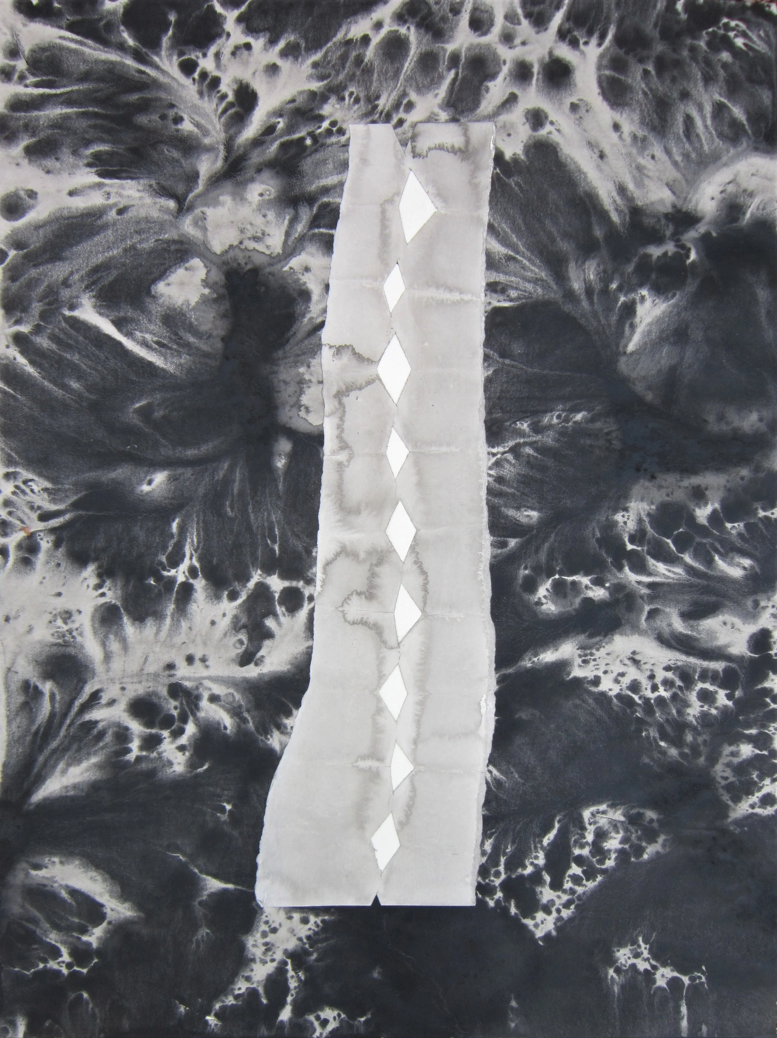January 2018, Ink, rainwater, collage on paper, 18”x24”