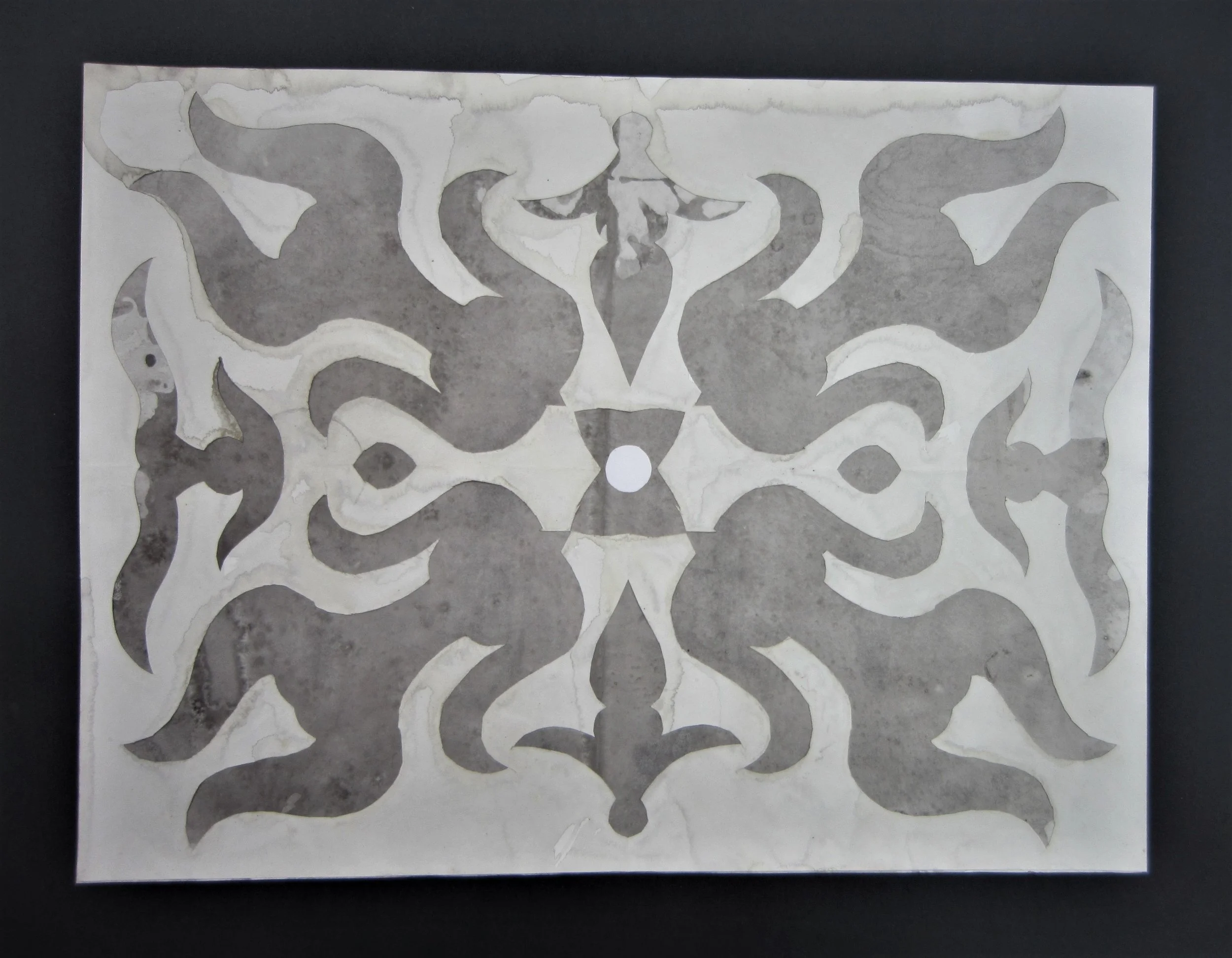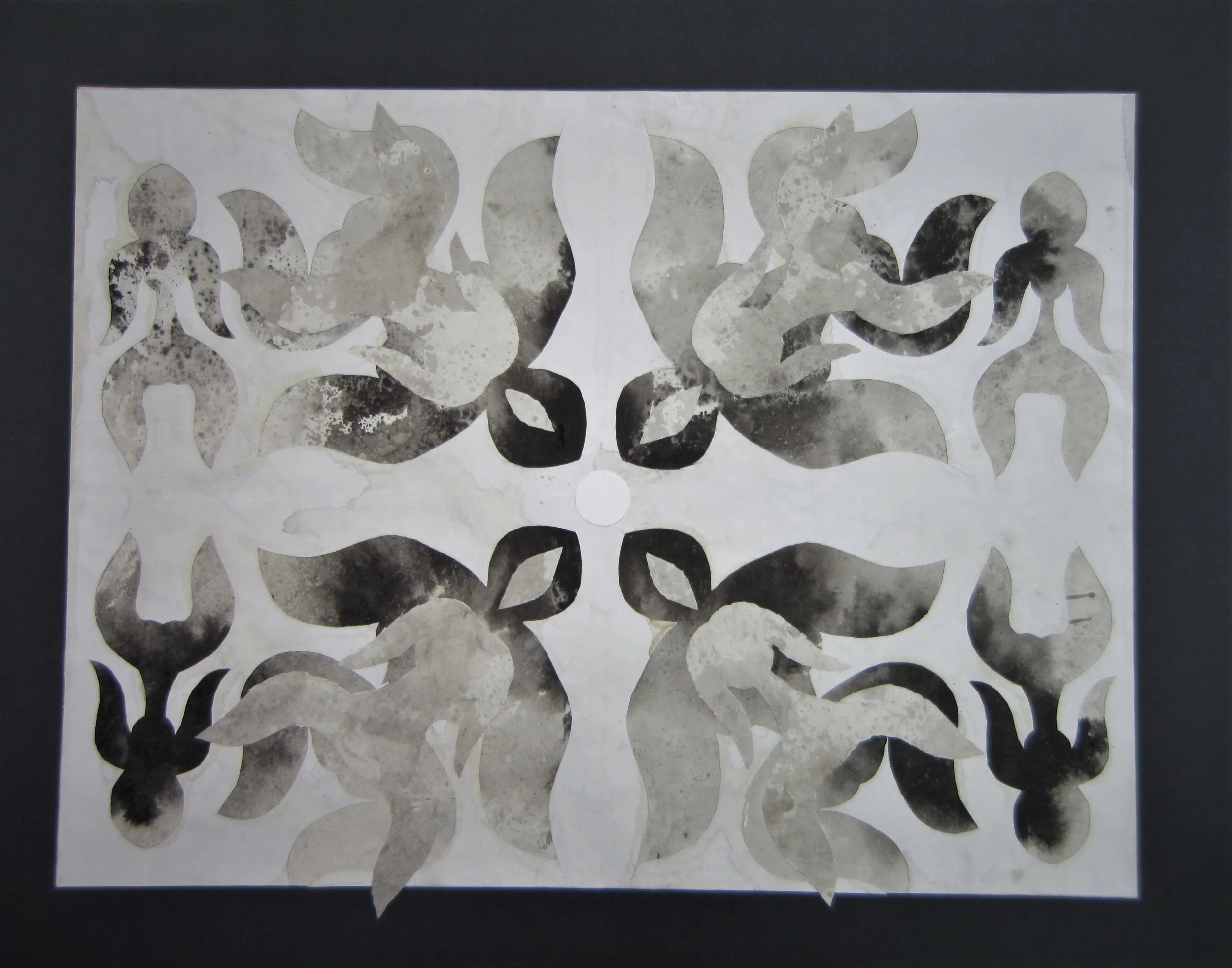 November 2017, ink, seawater, silver paint, sand, collage on paper, 22”x28”