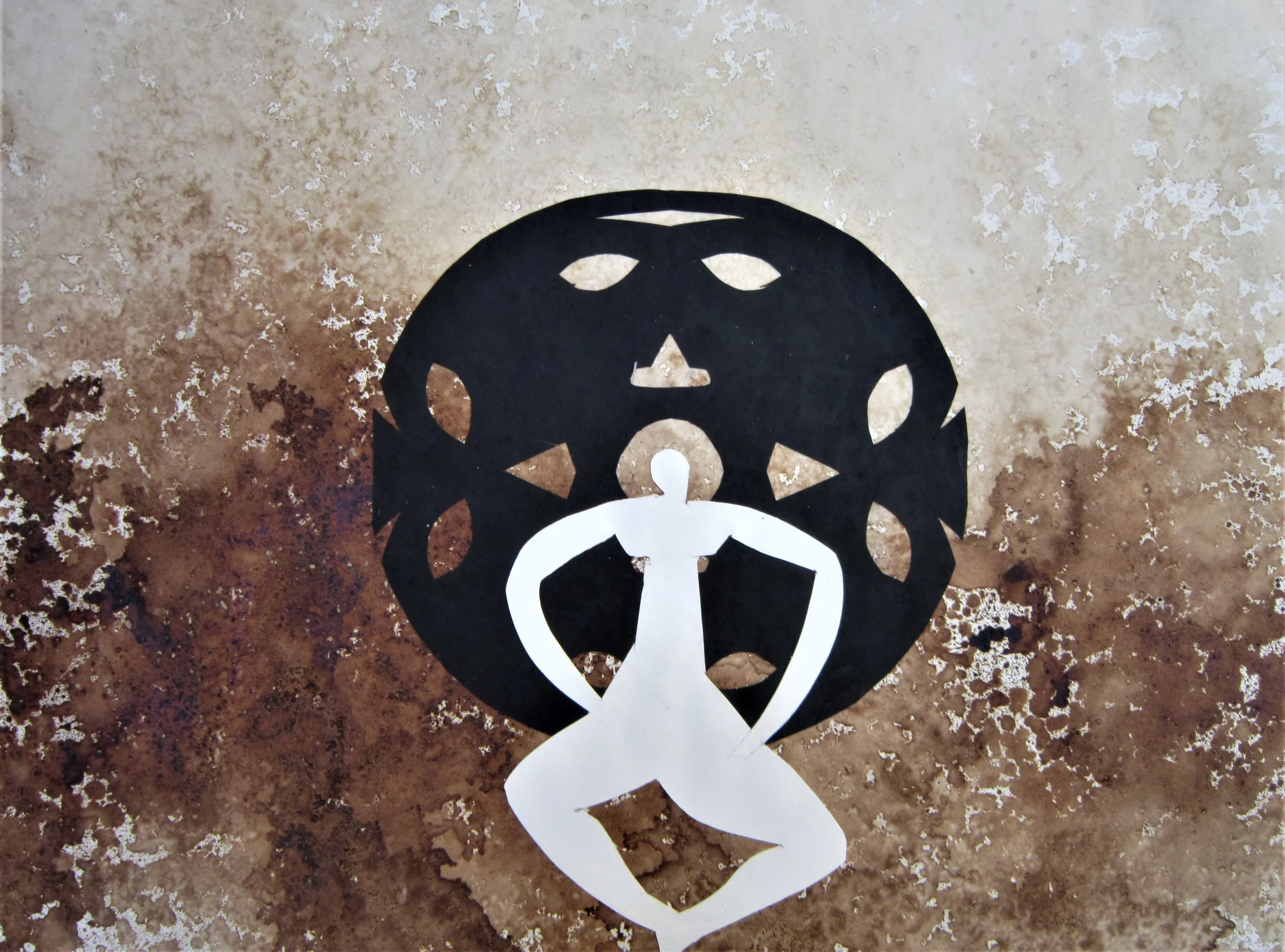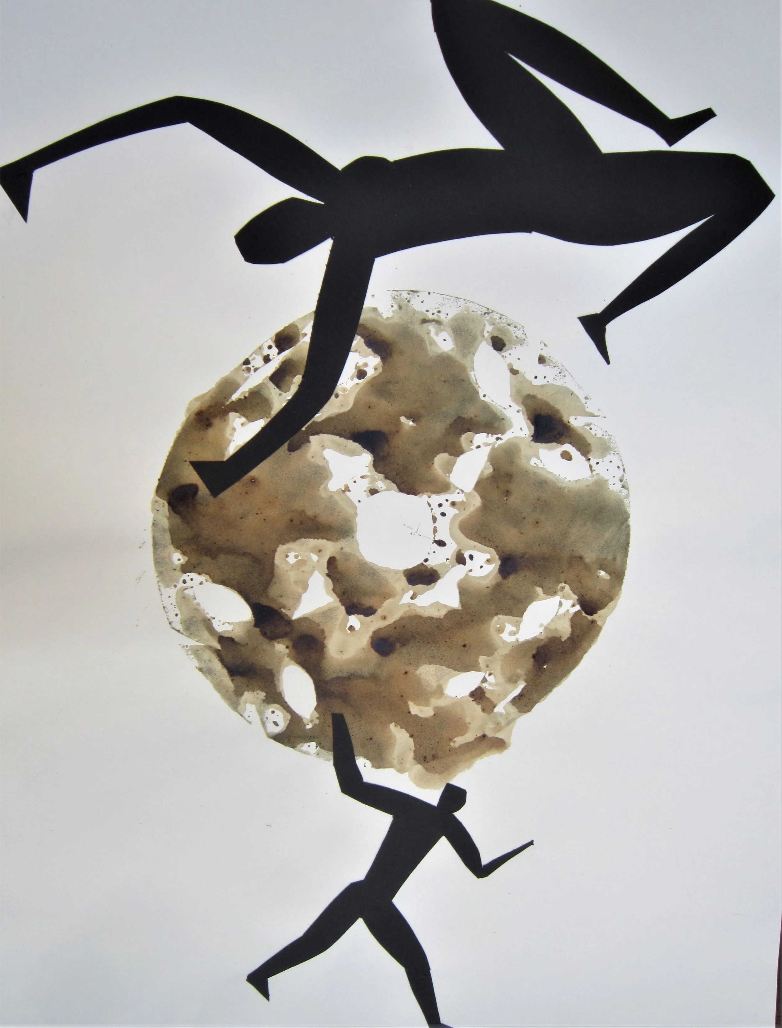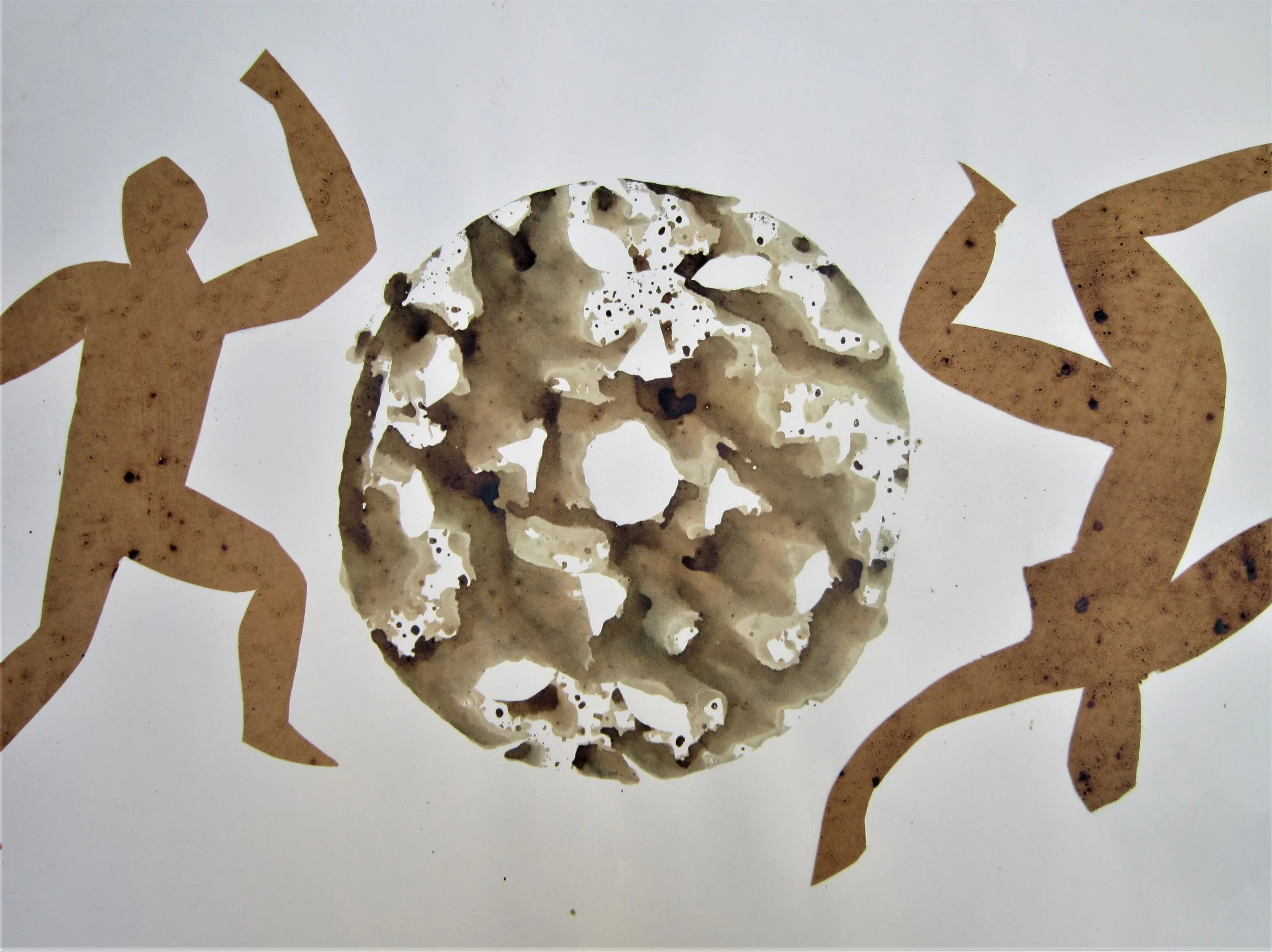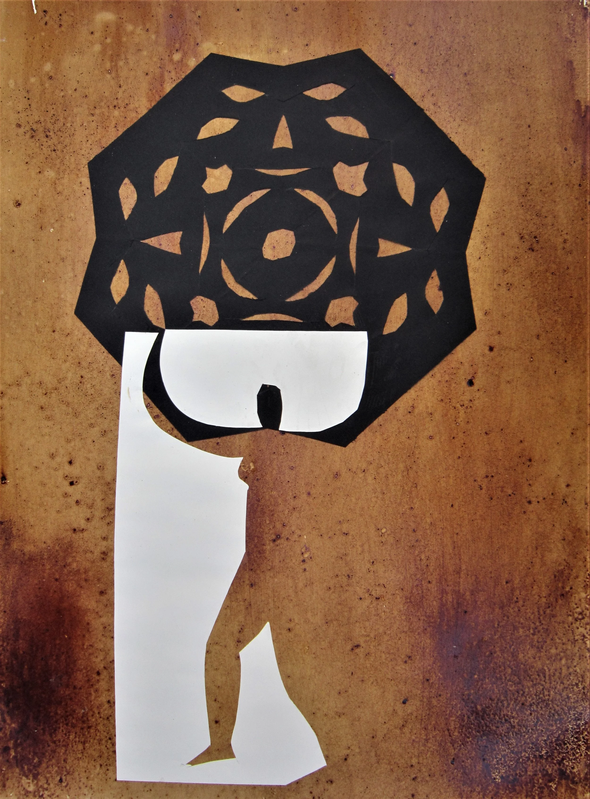 January 2018, ink, coffee, collage on paper, 18”x24”
