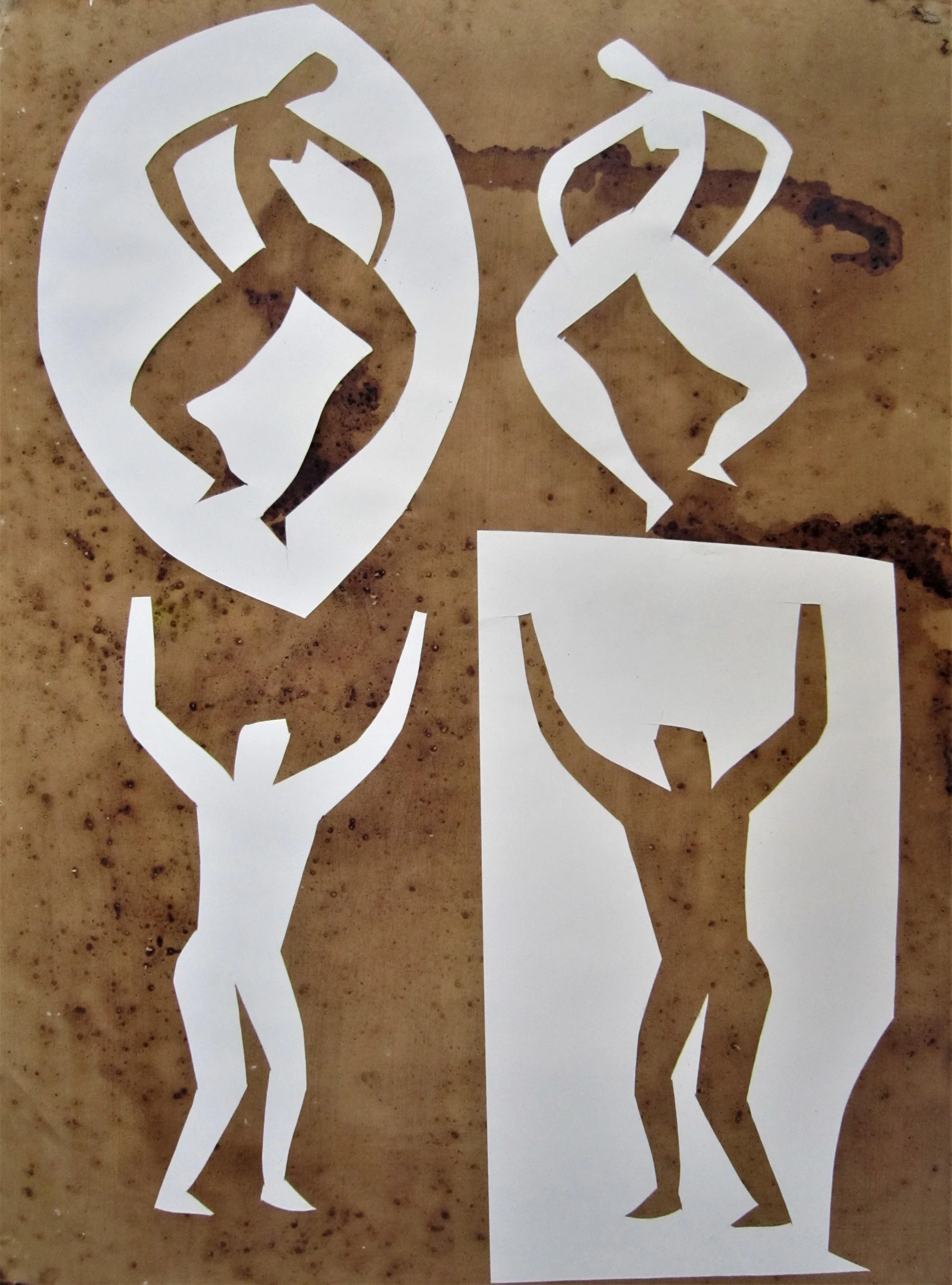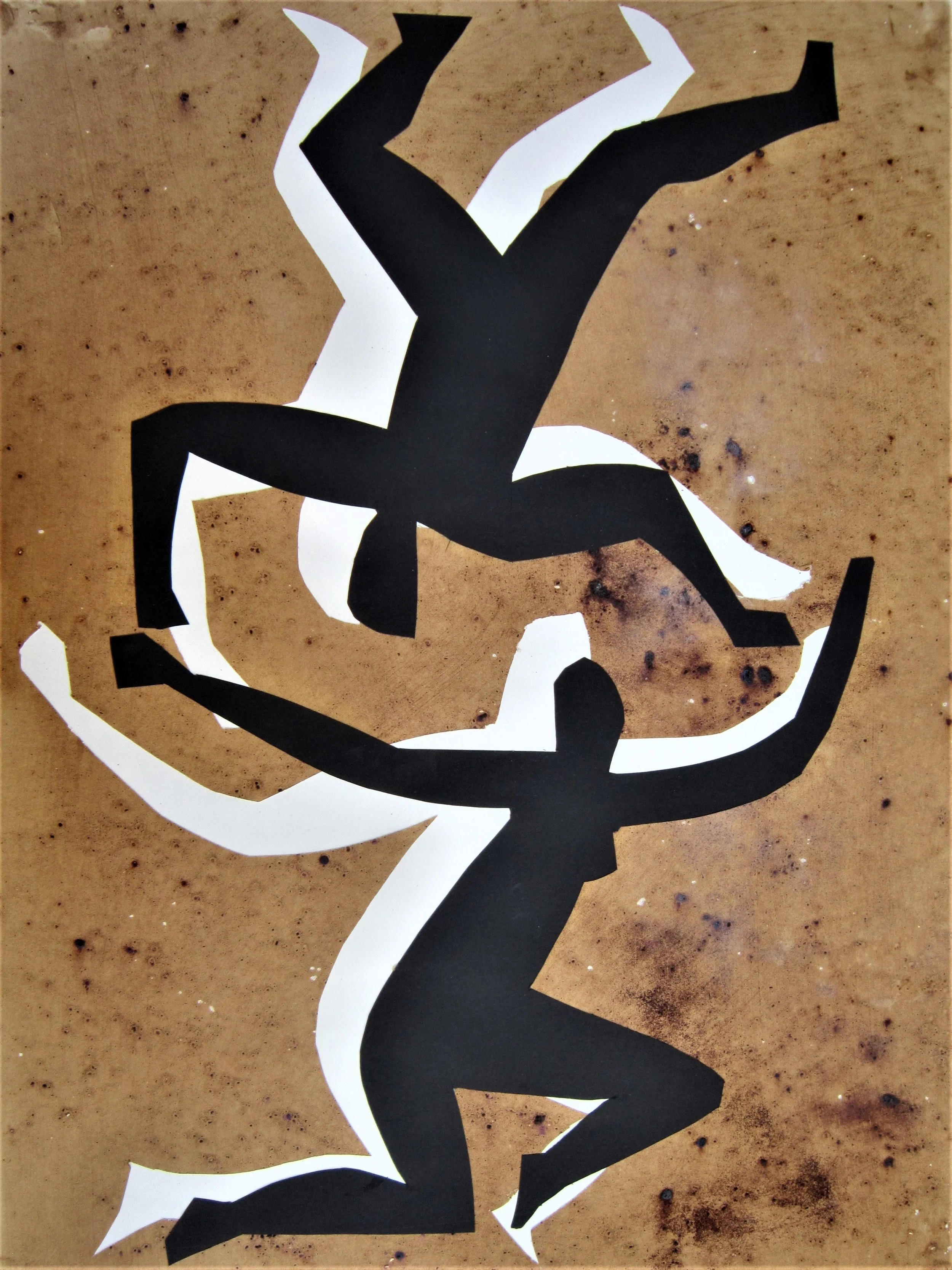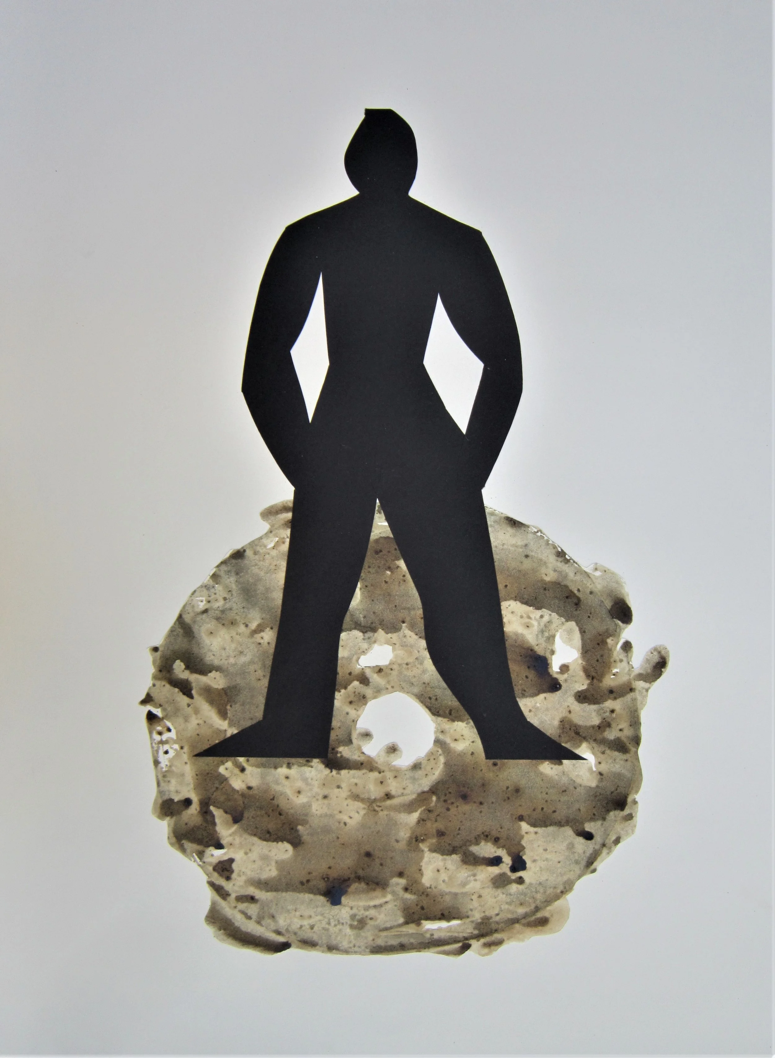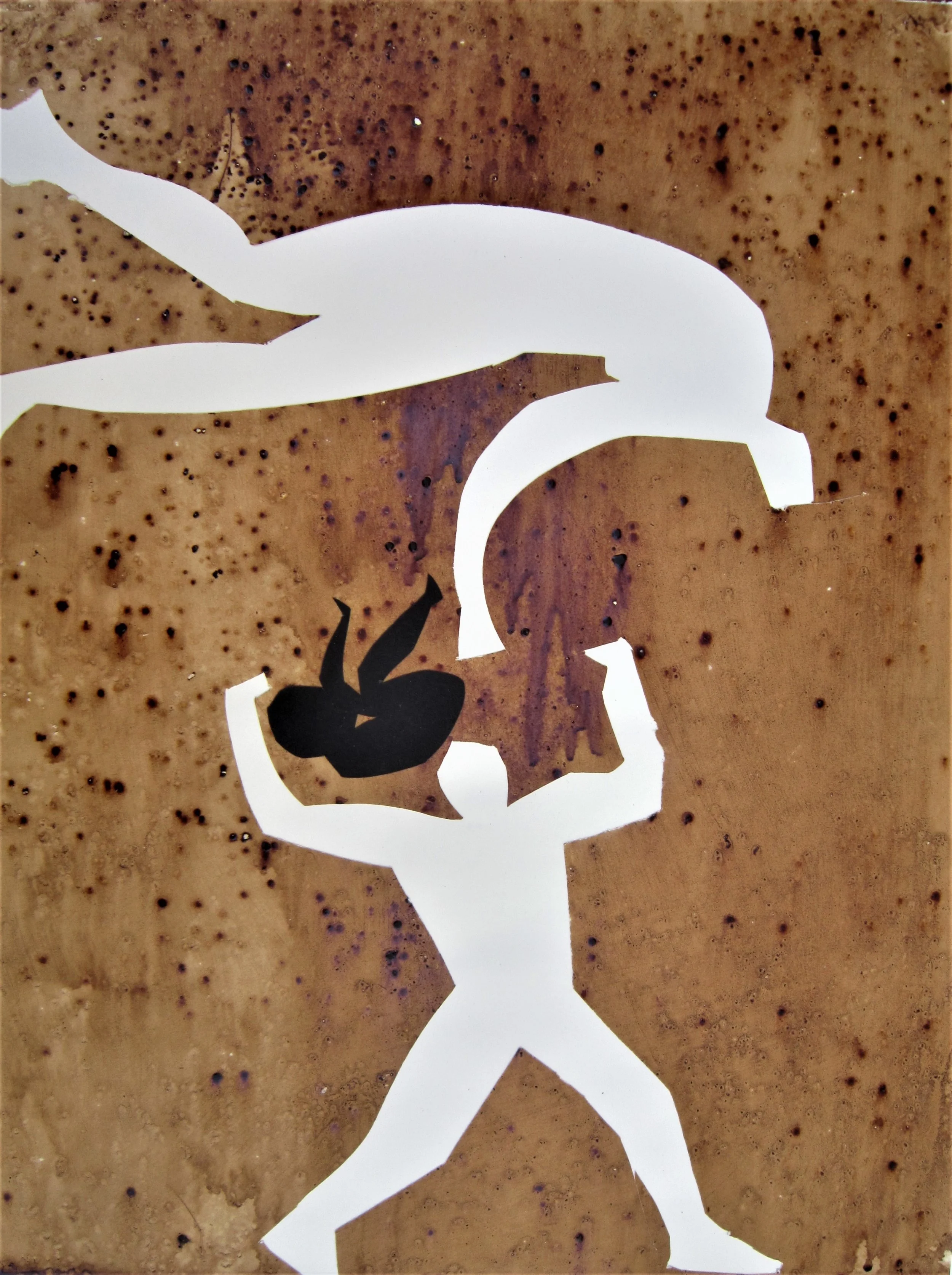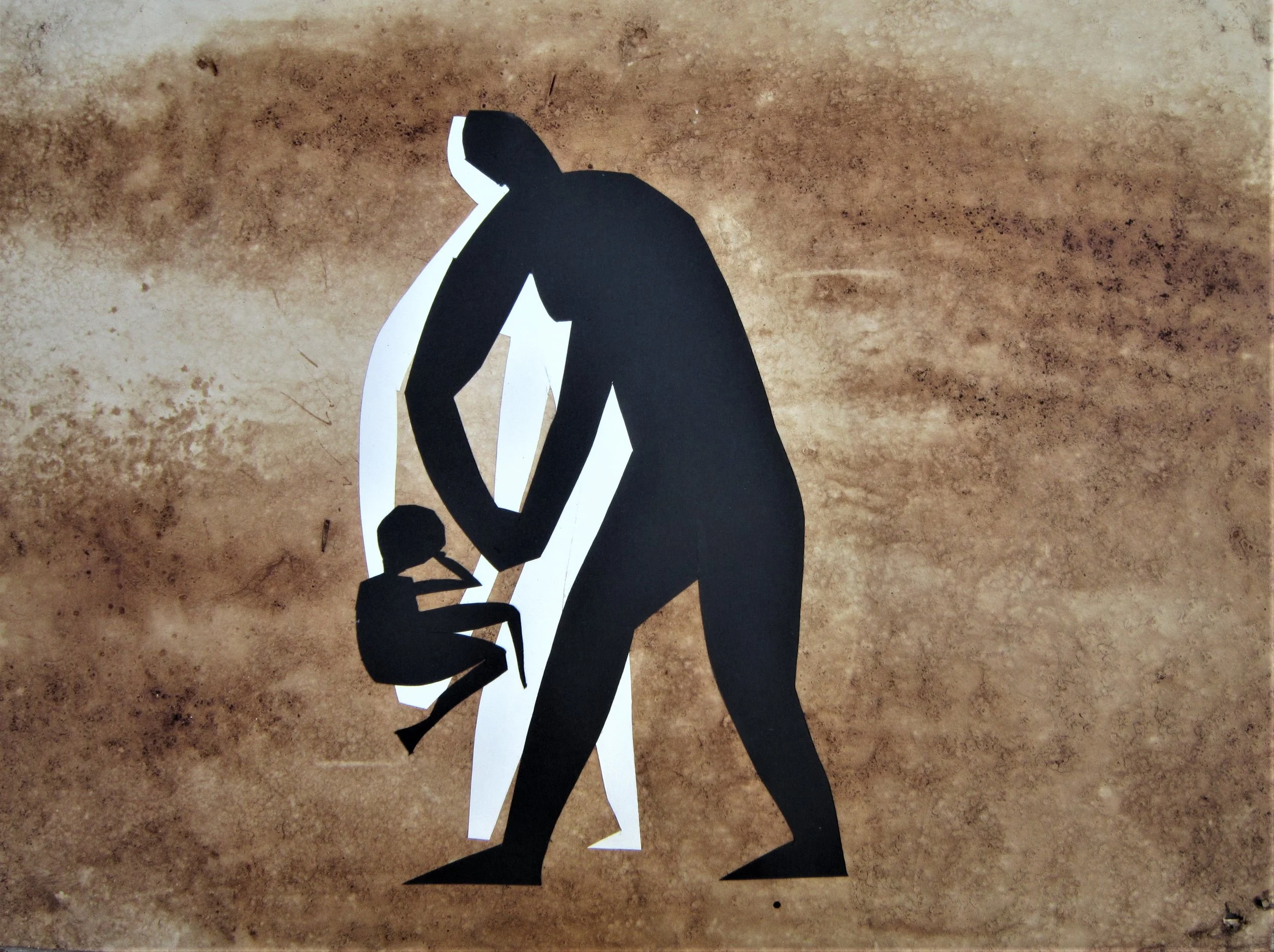 January 2018, ink, coffee, collage on paper, 18”x24”