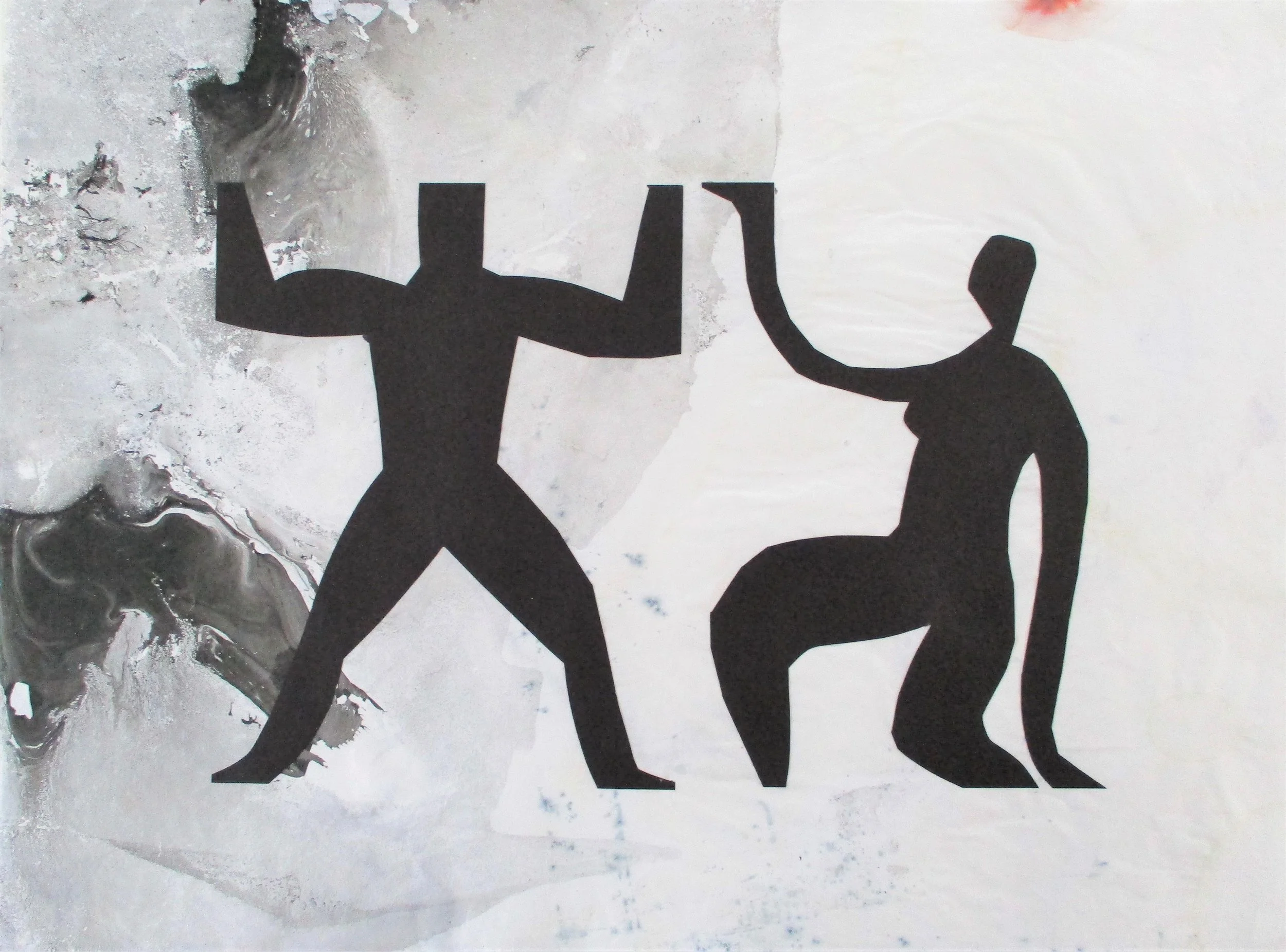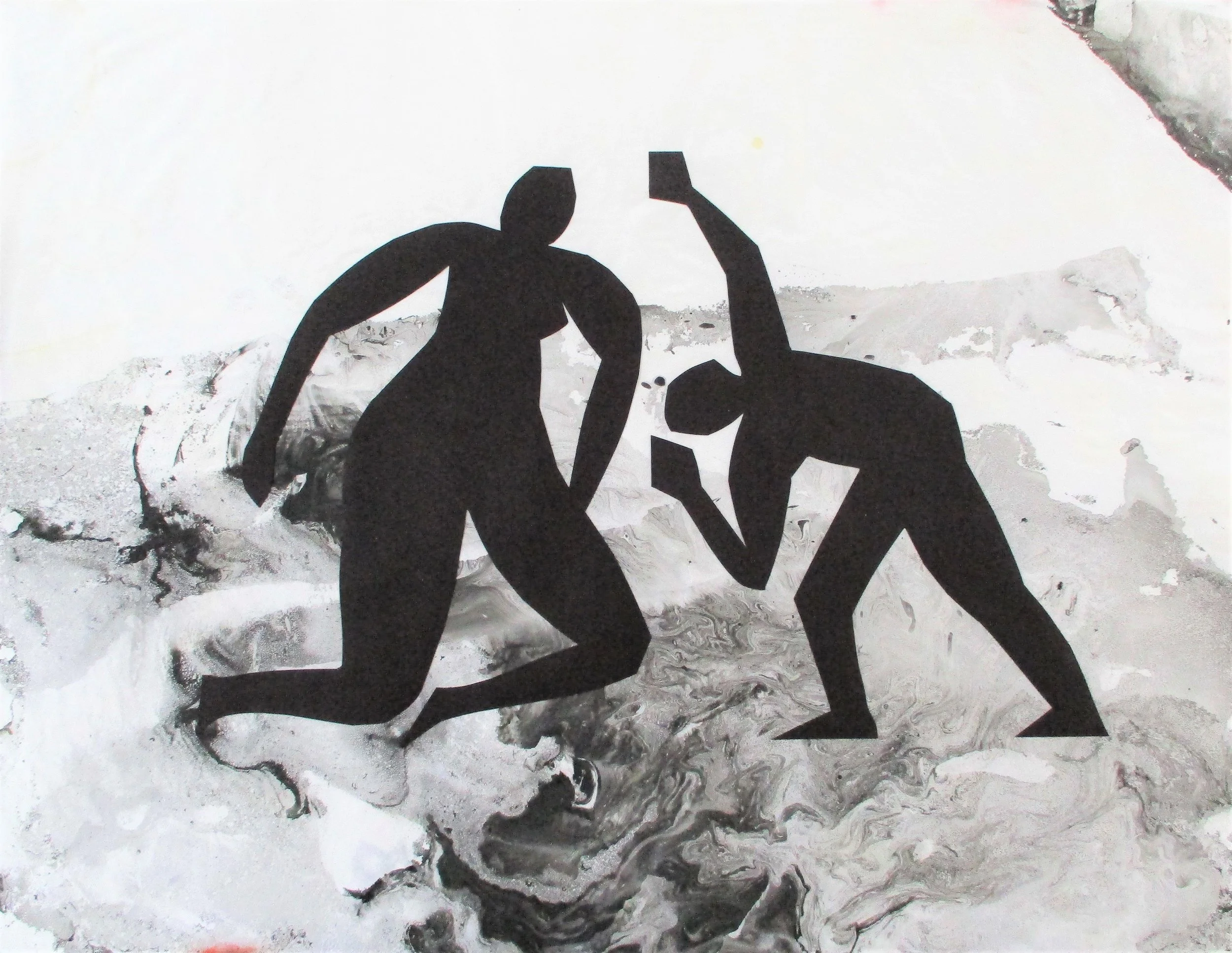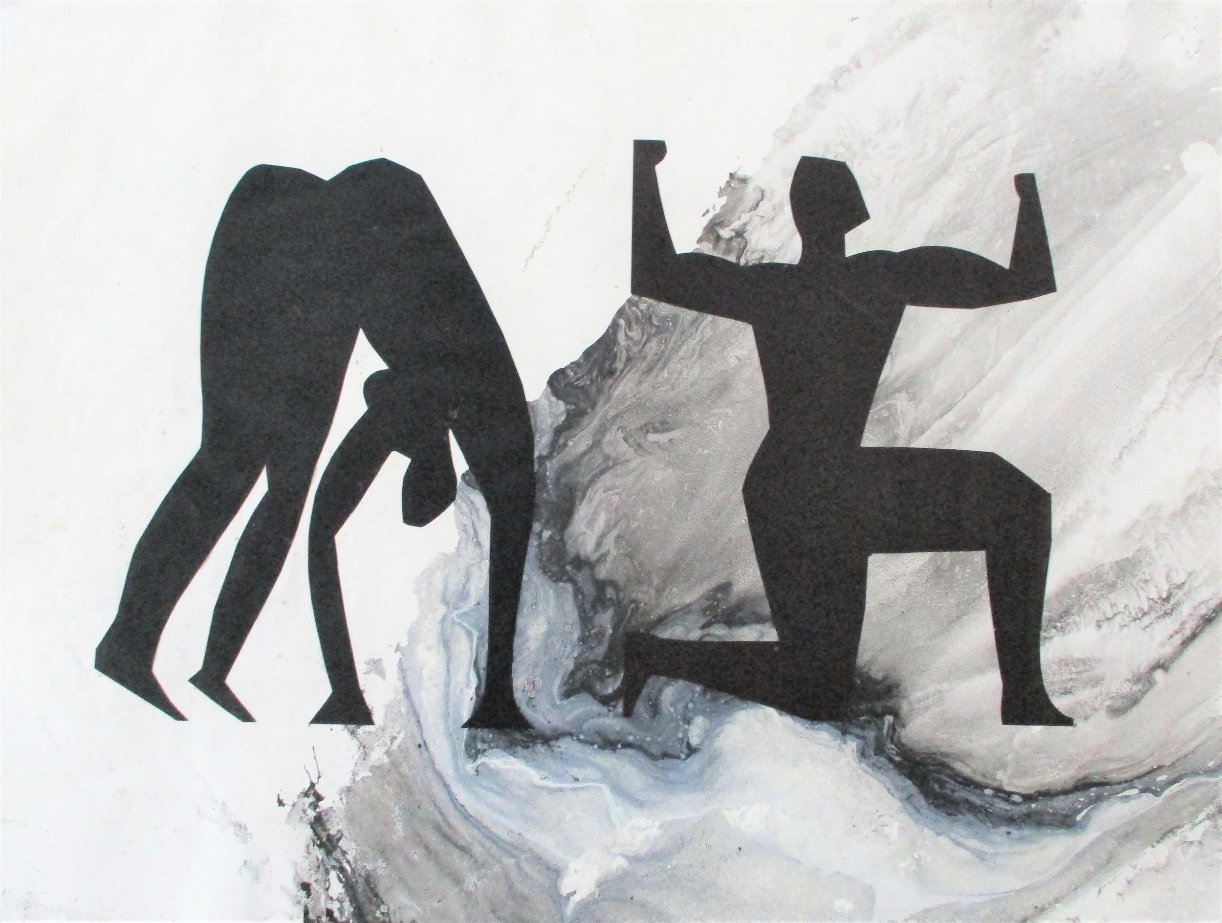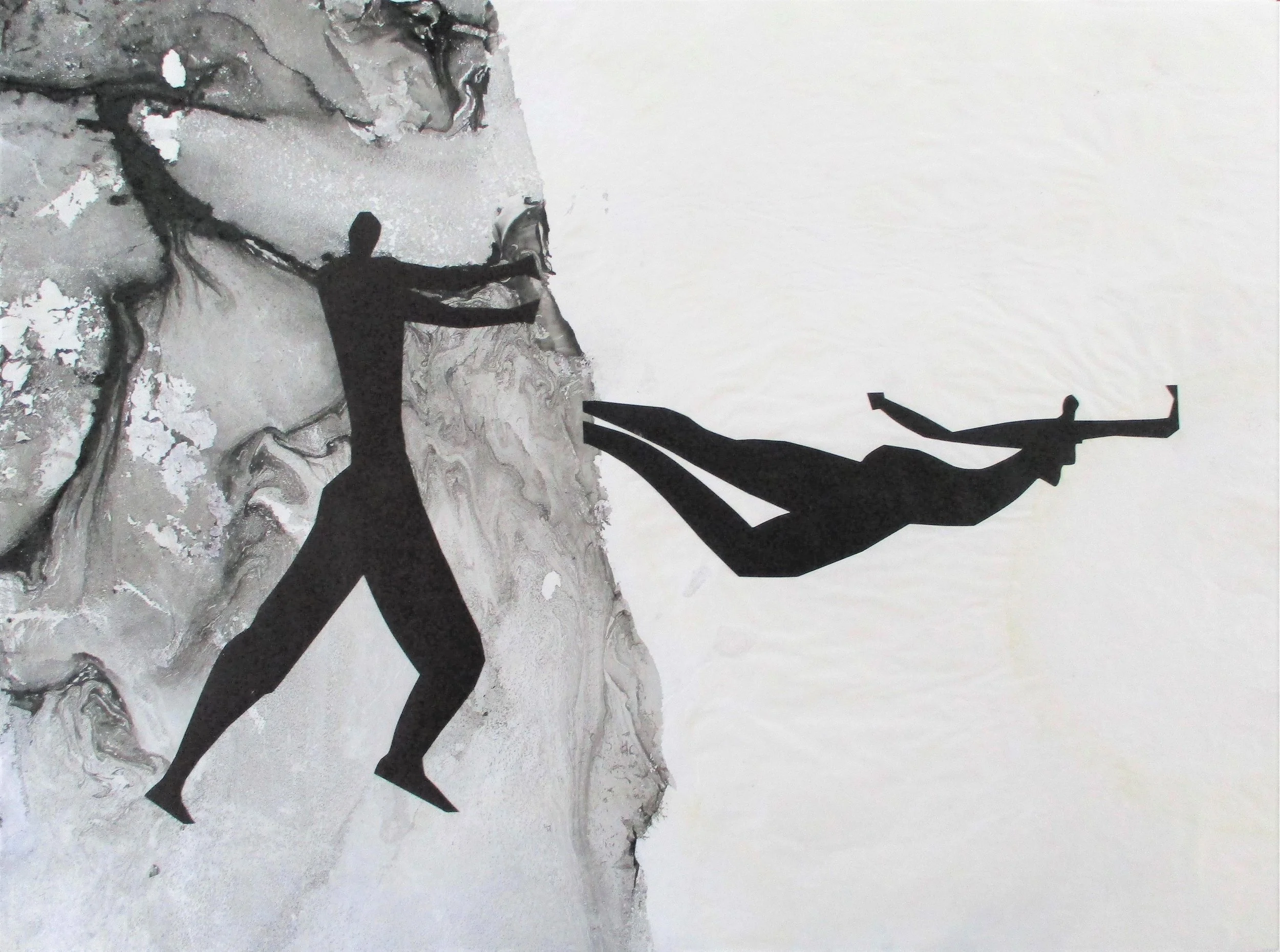 March 2018, seawater, spray paint, collage on paper, 18”x24”