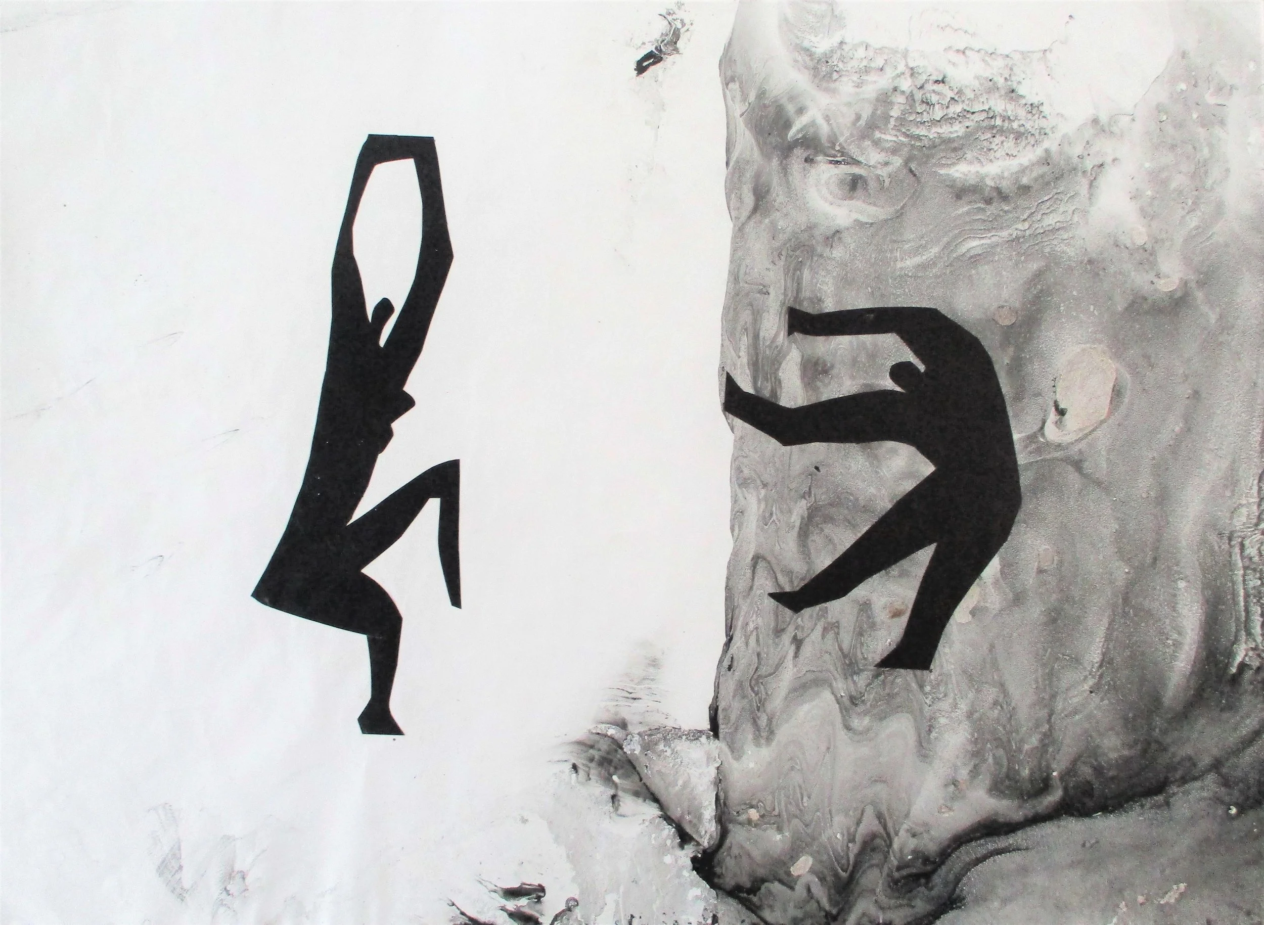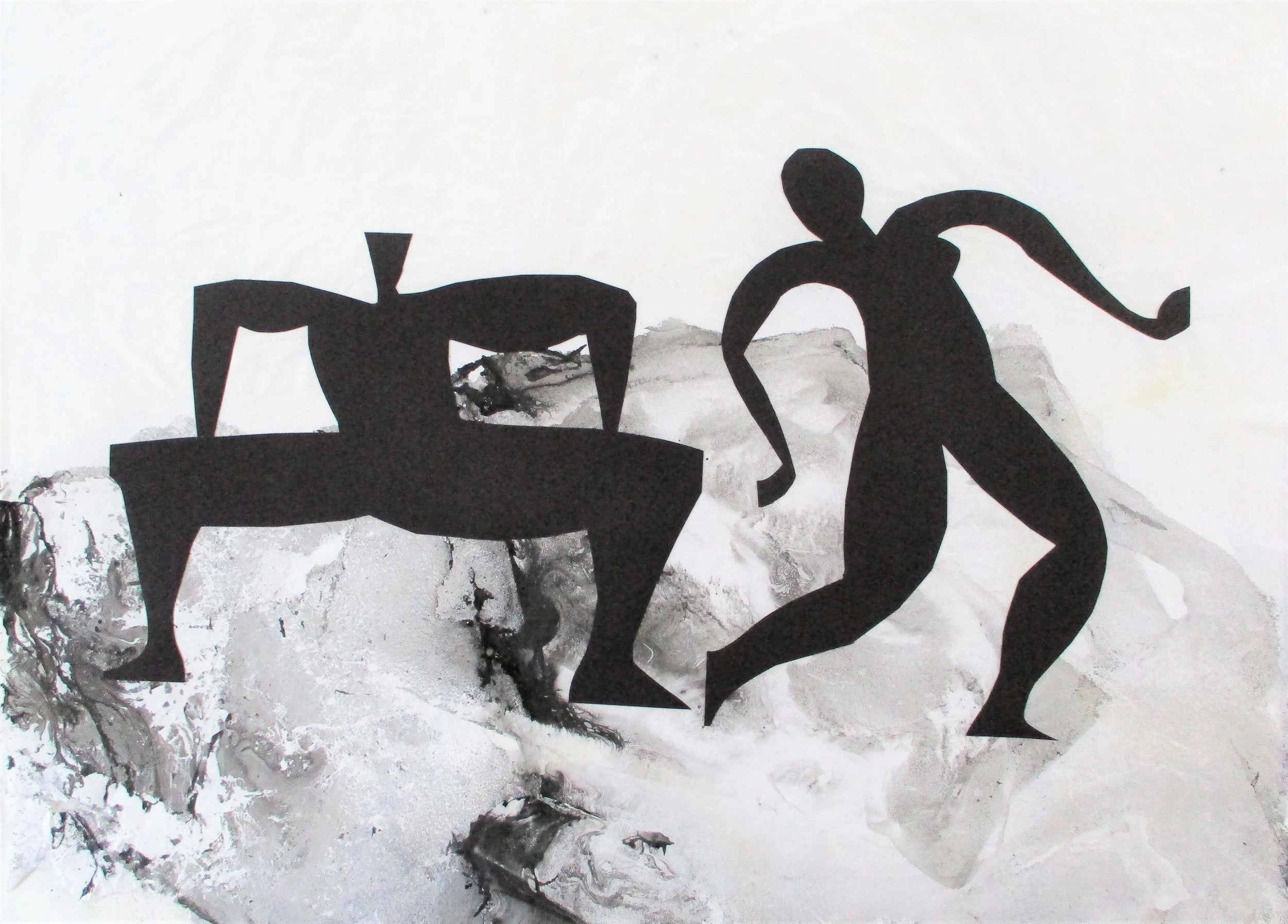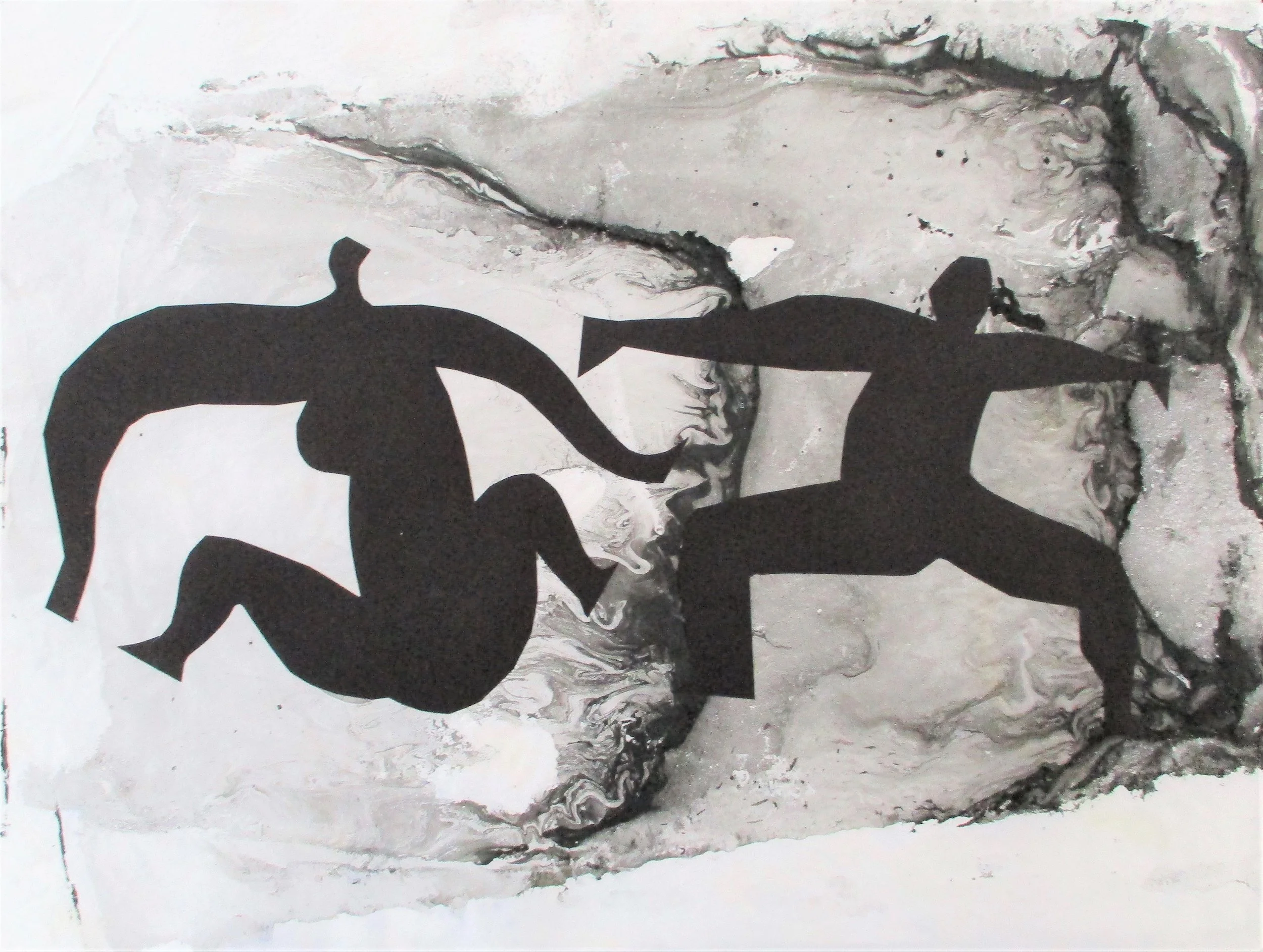 March 2018, seawater, spray paint, collage on paper, 18”x24”