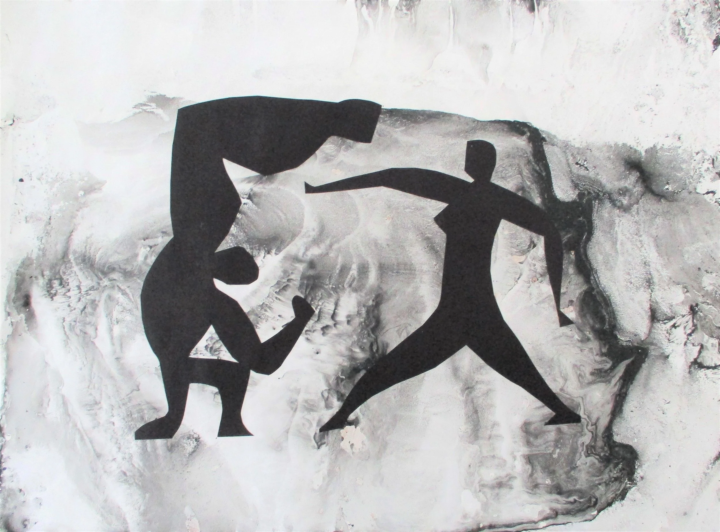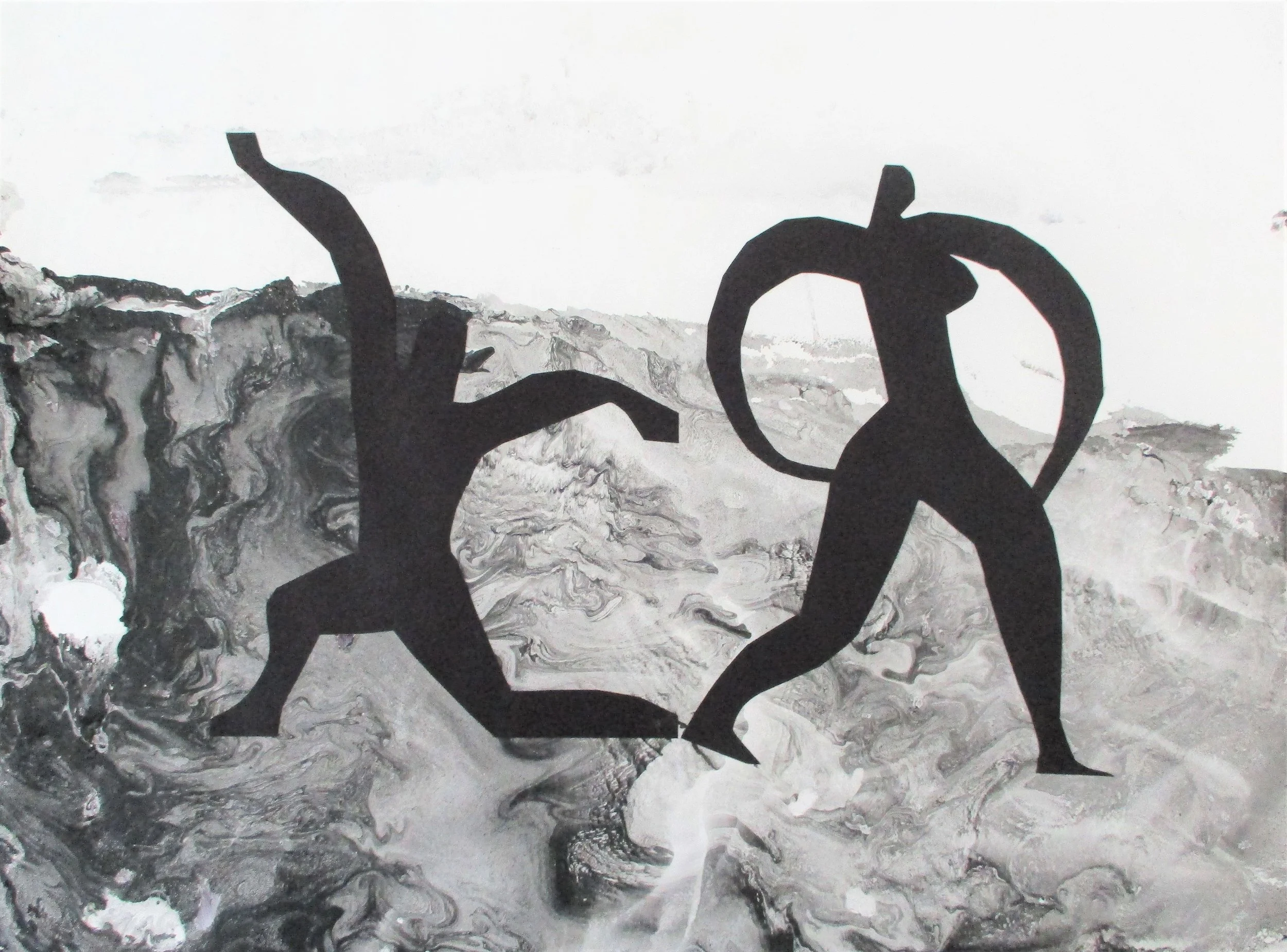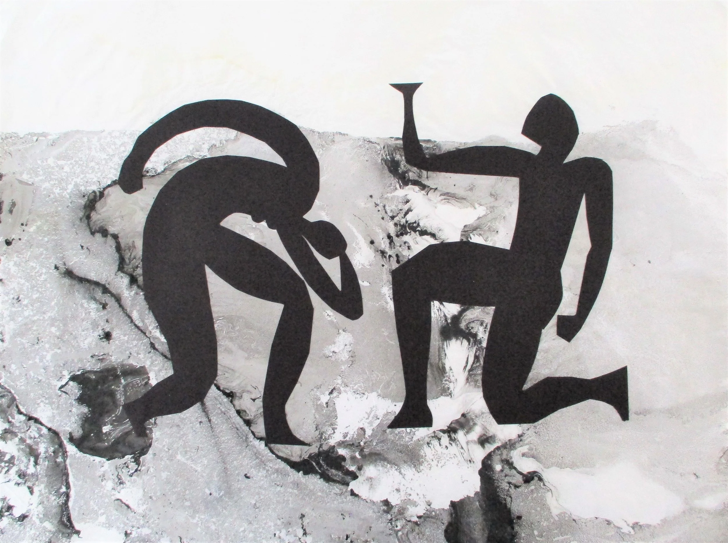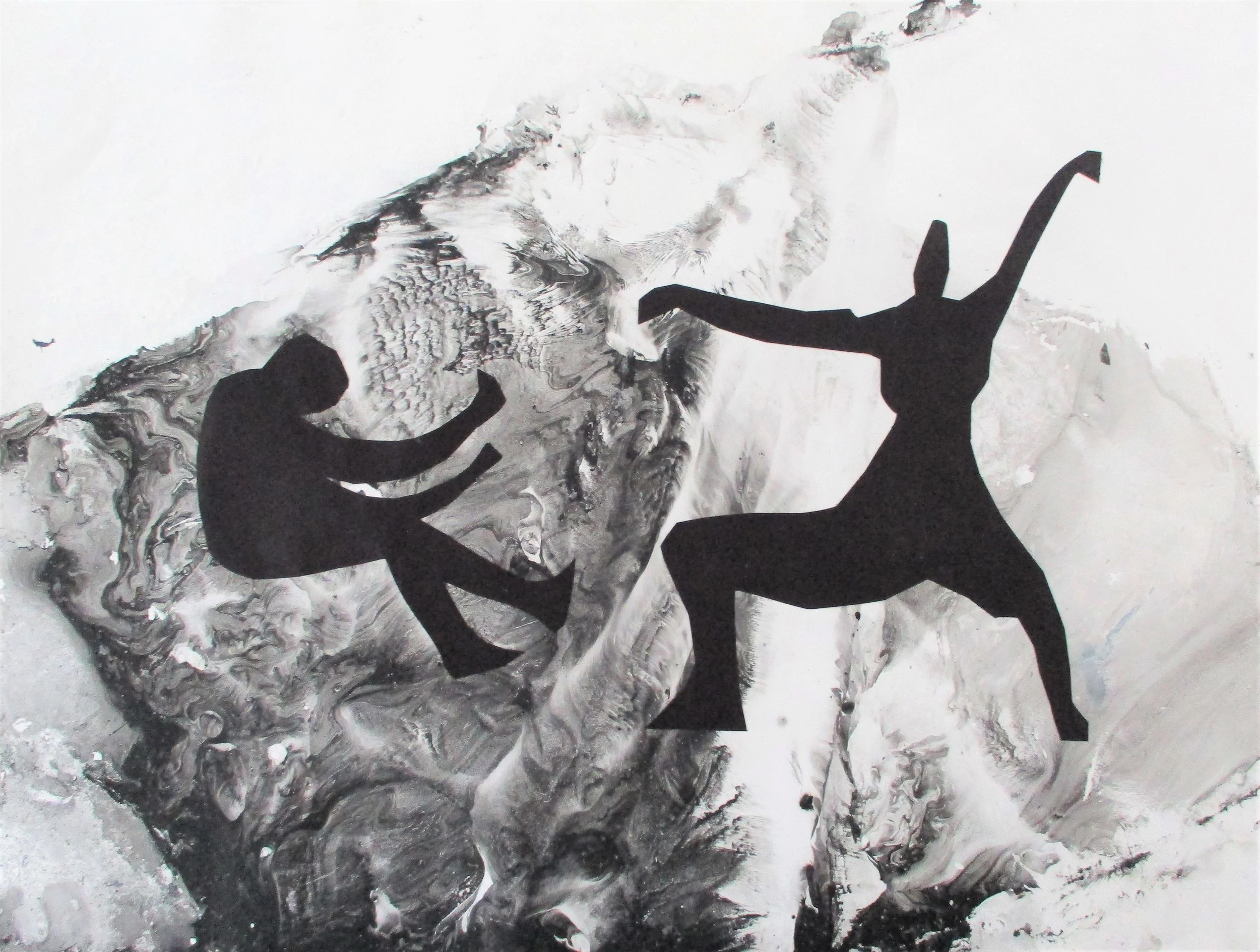 March 2018, seawater, spray paint, collage on paper, 18”x24”